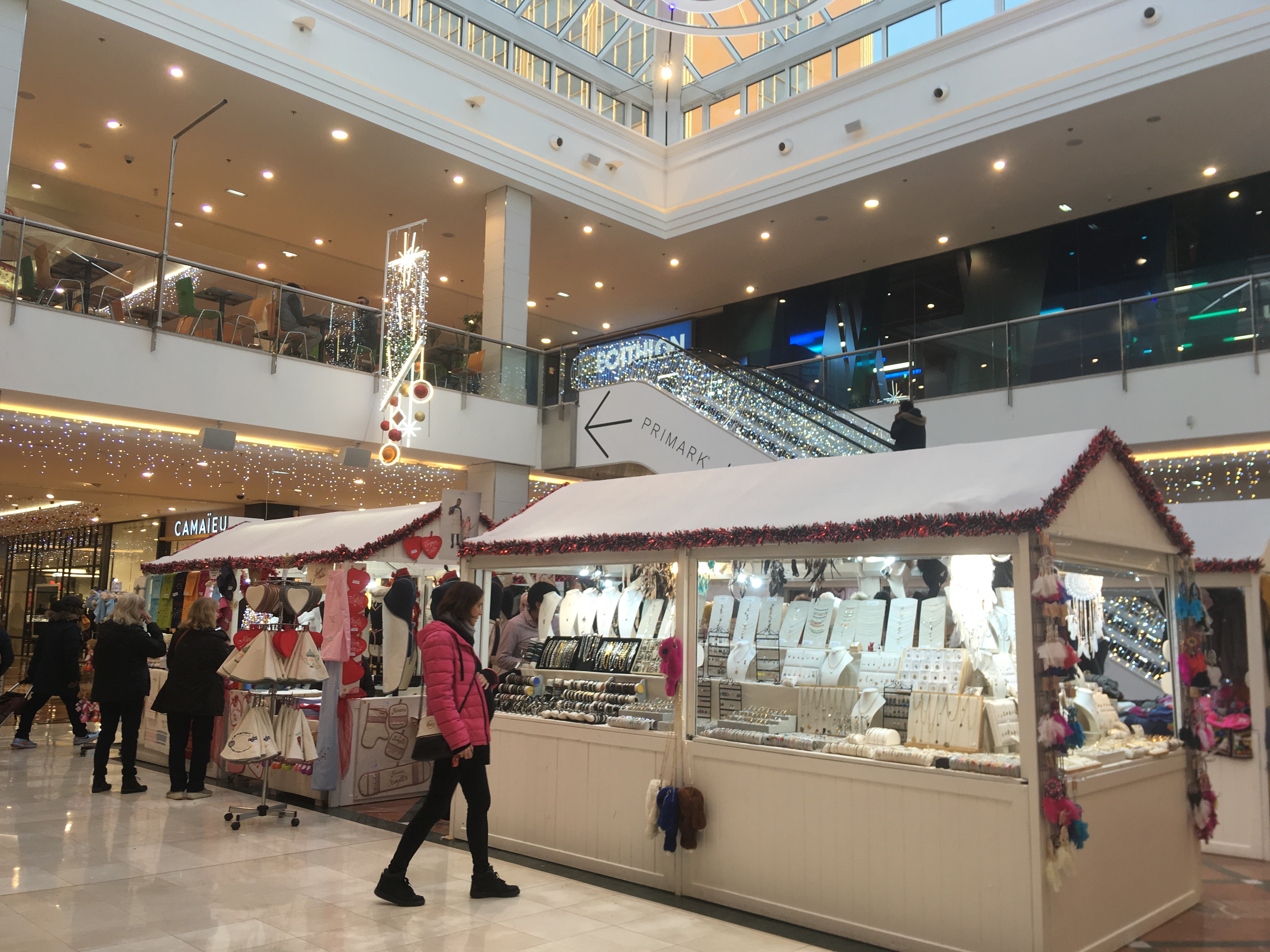 Découvrez les jolis chalets blancs et leur offre colorés et originale. Echarpes, étoles, bijoux, nappes, objets de décoration… le marché de Noël, c’est encore plus d’idées cadeaux à Evry2 !