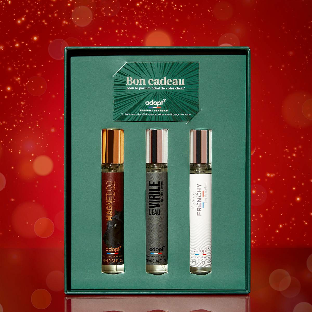 Contenance : 3 flacons de 10 ml chacun, format idéal pour le voyage ou le sac à main. Marque : Adopt, reconnue pour ses compositions modernes et accessibles. Parfums : Magnetico et L’Eau, conçus pour durer et révéler votre personnalité.