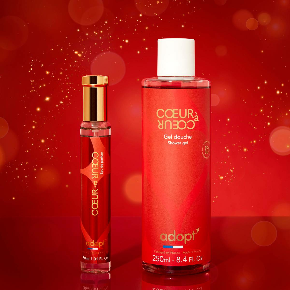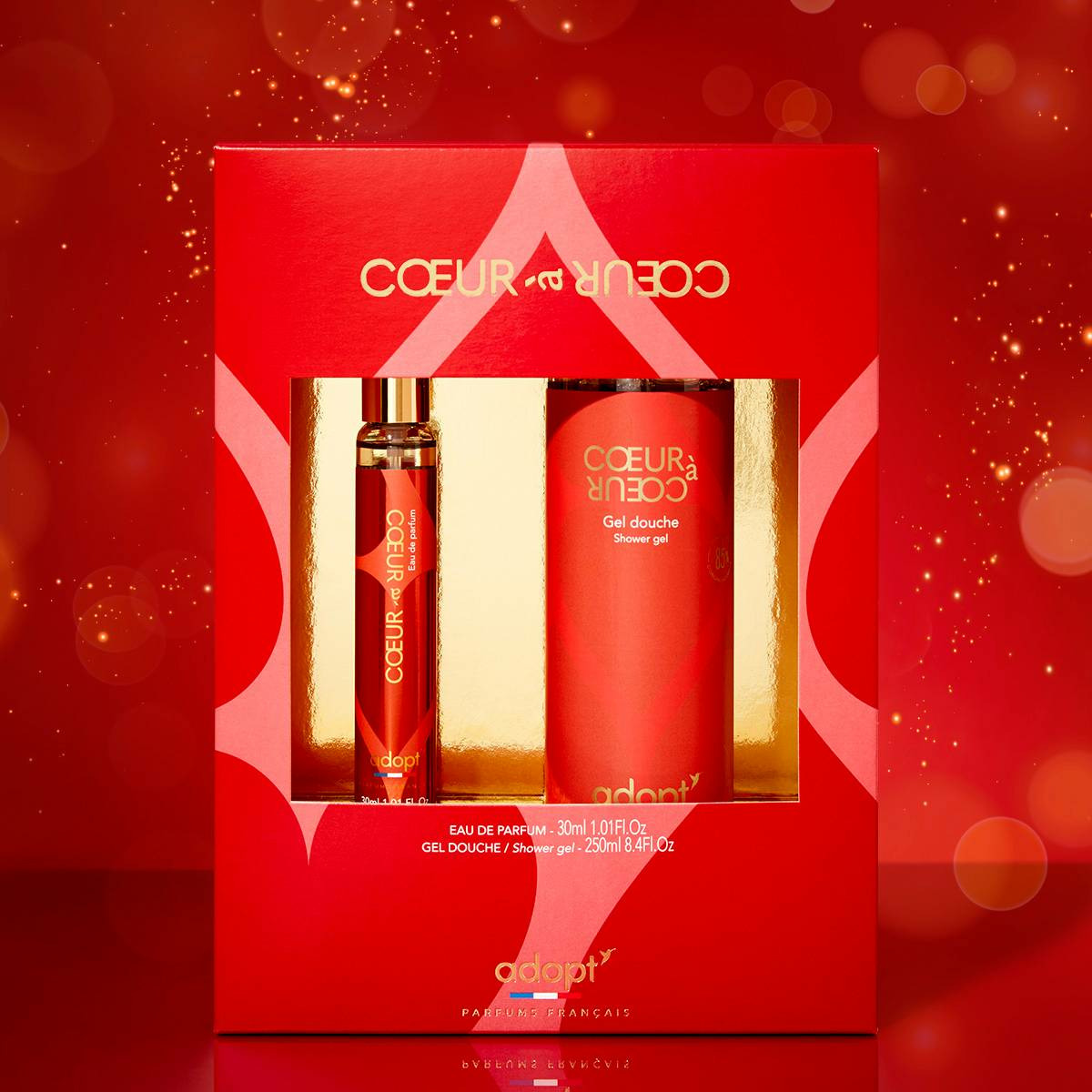 Le coffret comprend un flacon de parfum de 30 ml et un gel douche de 250 ml, tous deux élaborés par la marque Adopt, reconnue pour ses compositions de qualité et ses formules respectueuses de la peau.