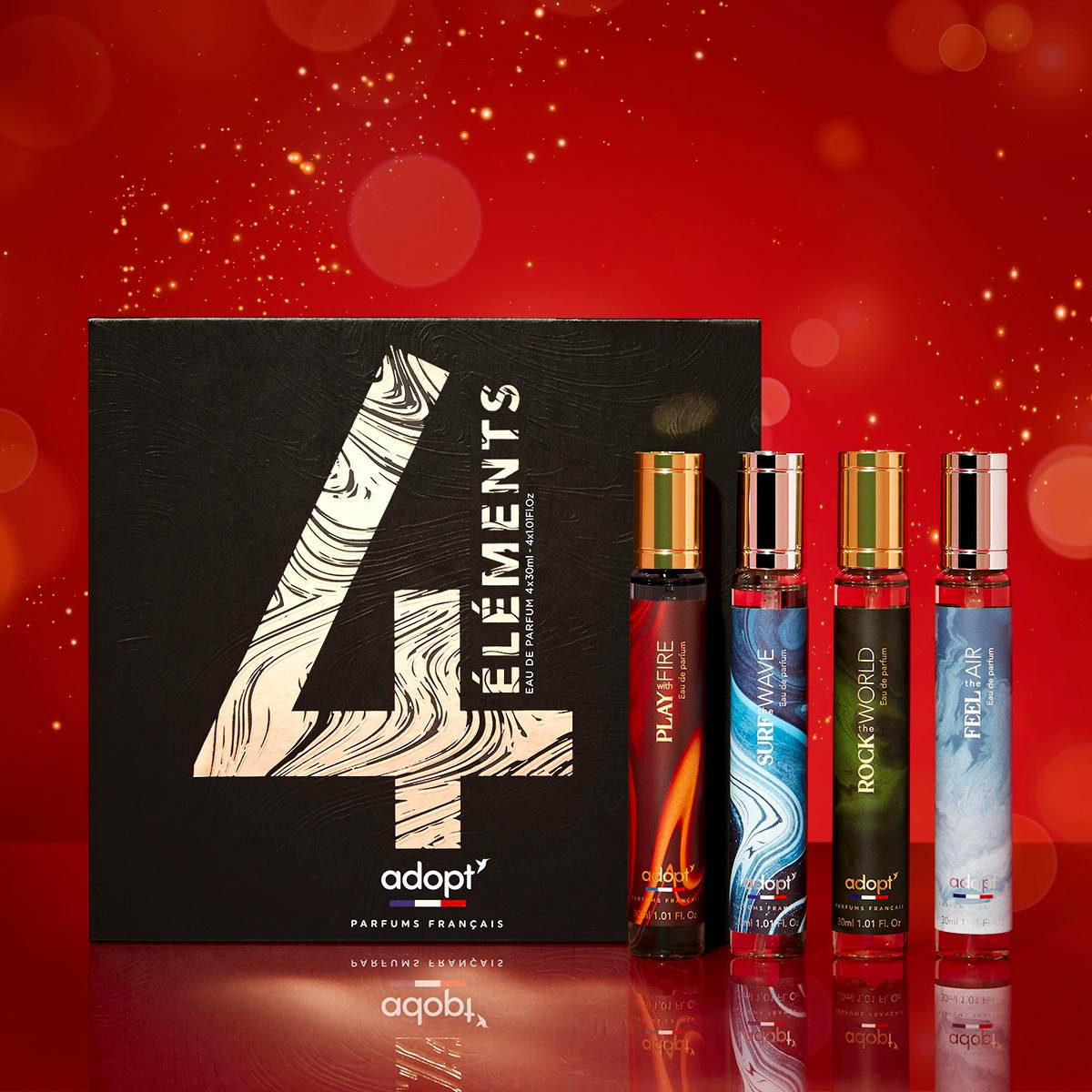 Contenance : 4 flacons de 30 ml chacun. Marque : Adopt. Format pratique pour voyager ou offrir. Parfums variés inclus dans le coffret pour une diversité olfactive.