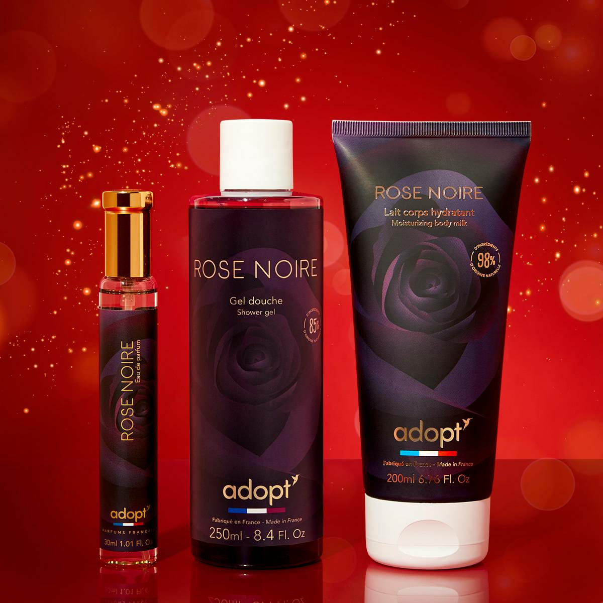 Le coffret comprend : un parfum 30 ml, un gel douche 250 ml et un lait corporel. Tous les produits sont signés Adopt, garantissant qualité et efficacité. Les formules sont adaptées à un usage quotidien et conviennent à tous types de peau.
