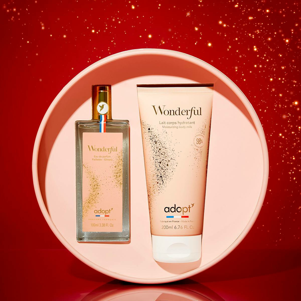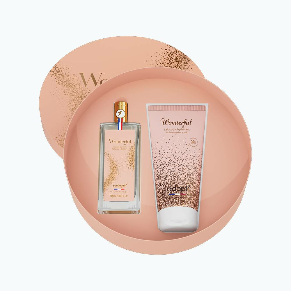 Contenance : eau de parfum 100 ml, lait corps 200 ml. Marque : Adopt. Formulation adaptée à un usage quotidien. Packaging soigné, parfait pour offrir ou se faire plaisir.
