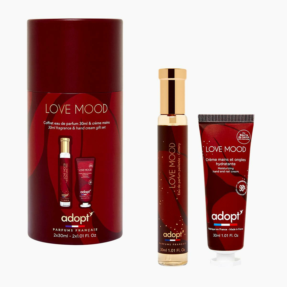 Le coffret contient-il des ingrédients naturels ? Oui, Adopt privilégie des formules respectueuses de la peau.