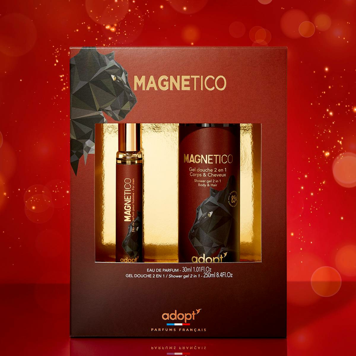 Contenance : eau de parfum 30 ml, gel douche 250 ml. Marque : Adopt. Formulation adaptée à un usage quotidien.