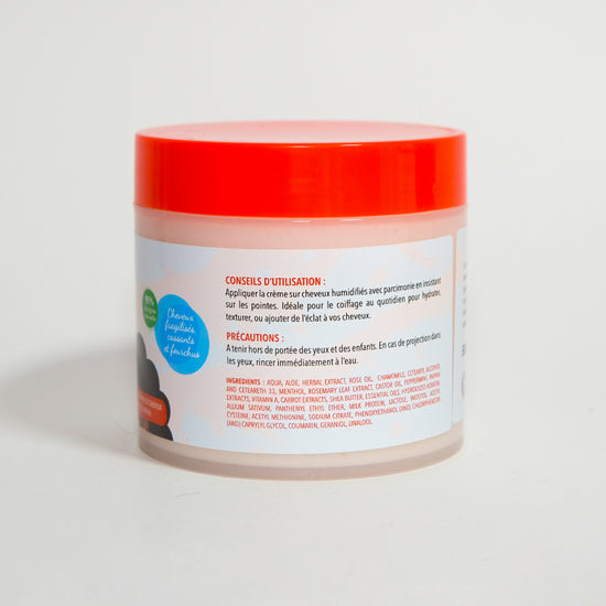Appliquer la crème sur cheveux humide avec parcimonie, en insistant sur les pointes. Cette crème est idéale pour une utilisation quotidienne. Elle ajoutera texture et éclats à vos cheveux.