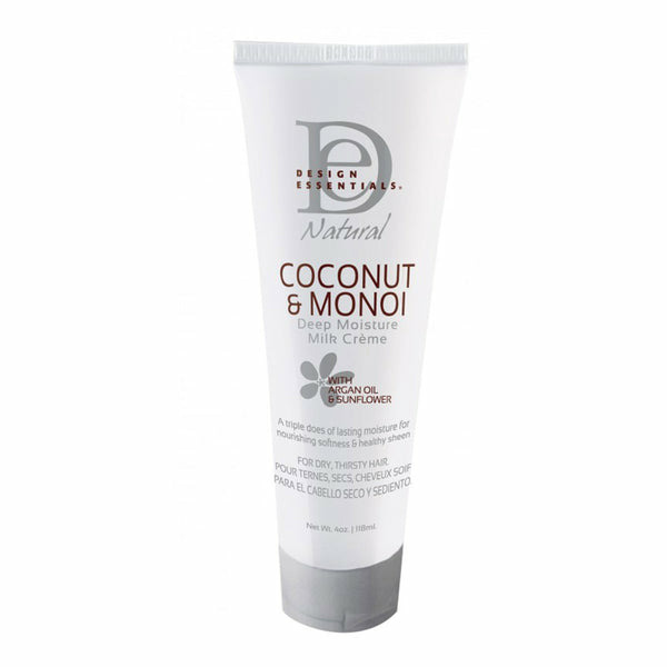 DESIGN ESSENTIALS COCONUT & MONOI : Notre Crème au lait hydratant profond à la noix de coco et au monoï Design Essentials, infusée d’un triple mélange d’huiles d’argan, d’olive et de tournesol, procure une hydratation intense qui transforme les cheveux secs et assoiffés en cheveux visiblement plus doux, brillants et revitalisés. Cette crème à l’huile légère et hautement concentrée est enrichie de protéines de lait, Calendula, Vitamin E et réparatrice pour reconstituer les boucles et renforcer la barrière d’hydratation naturelle de vos cheveux pour une protection anti-frisottis toute la journée. La crème hydratante au lait et à la noix de coco Design Essentials peut être utilisée à la fois pour retravailler ou revitaliser les styles du jour deux ou du jour 3 (y compris les queues de cheval, les Mohawks, les styles fuselés et les styles naturels).