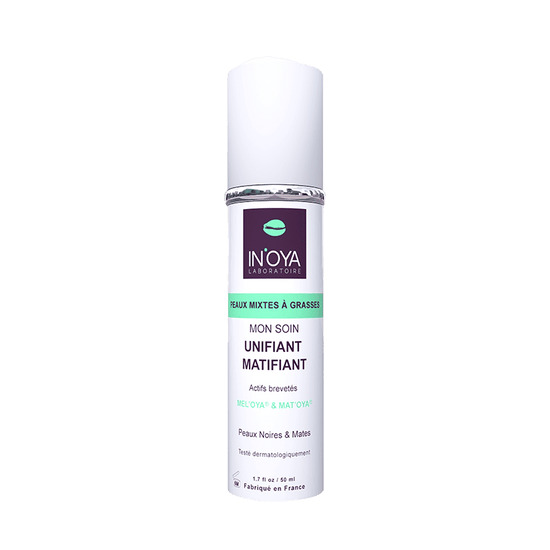 La technologie « MAT’OYA® » permet de diminuer à la source la production de sébum chez les peaux noires et mates à l’origine de nombreuses imperfections. Ainsi, Mon Soin « Unifiant Matifiant » réduit de 95% la brillance de la peau et de 90% le flux de sébum.