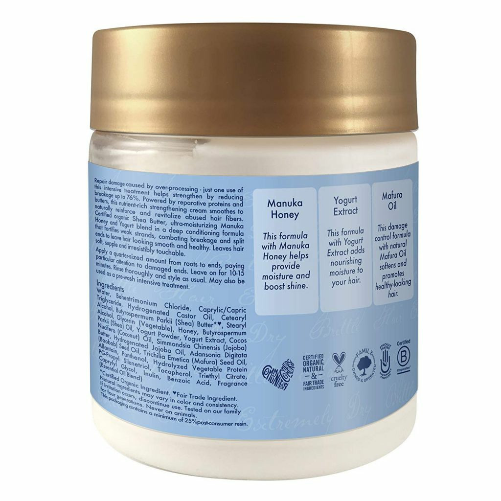 Ajoutez le Manuka Honey & Yogurt - Repair Protein à votre routine mensuelle pour des cheveux réparés en profondeur. Ce masque protéiné est destiné à réparer et hydrater les cheveux souffrant de sécheresse et de fragilité. Il est parfaitement indiqué en cas de « heat-damage », une fragilité causée par des outils chaud comme le sèche-cheveu ou le fer à lisser.