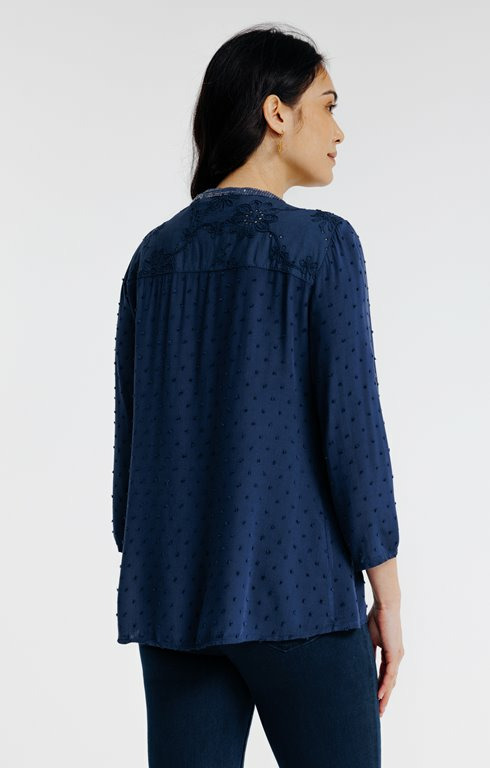 Peut-on porter ce chemisier en toutes saisons ? Sa matière légère le rend idéal pour le printemps et l’été, mais il peut aussi se porter sous une veste en automne.