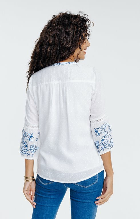 Blouse boutonnée uni avec broderie