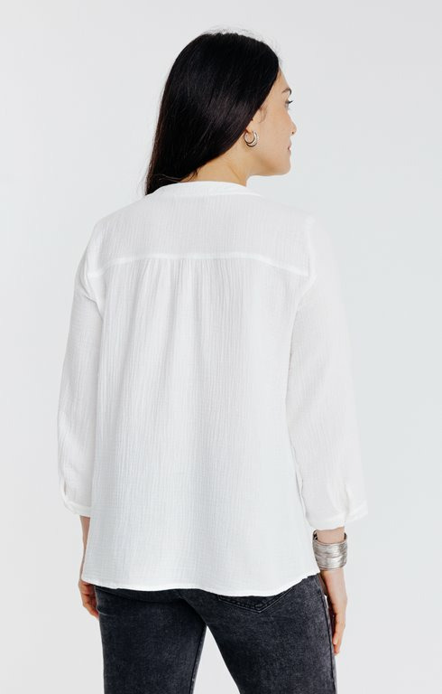 Conçu pour vous offrir une liberté de mouvement optimale, ce chemisier garantit un confort durable tout en valorisant votre style. Facile à associer, il rehausse instantanément n’importe quelle tenue, apportant une touche de sophistication discrète.
