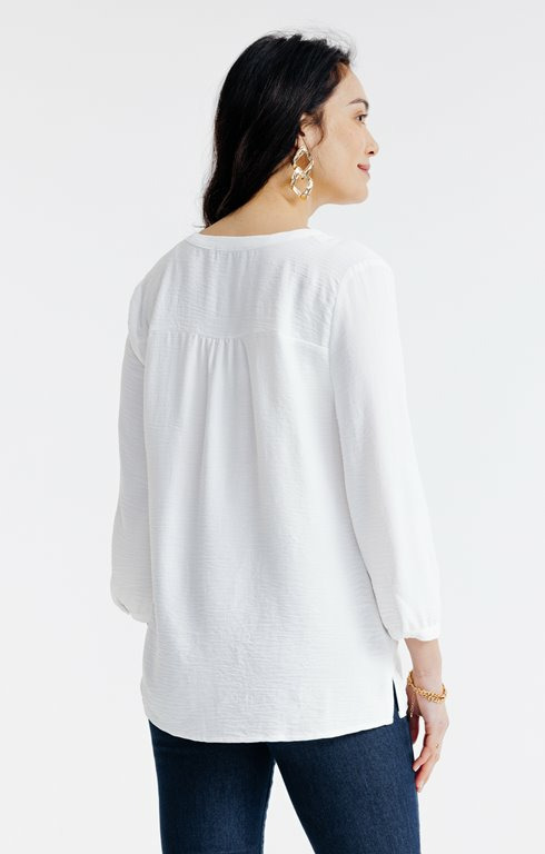 Peut-on porter ce chemisier en toutes saisons ? Sa matière légère le rend idéal pour le printemps et l’été, mais il peut aussi se porter sous une veste en automne.