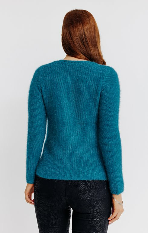 Réponse. Ce cardigan est confectionné en maille fluffy, offrant douceur et légèreté.