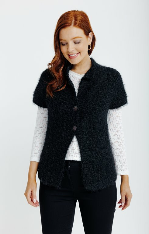 Réponse. Ce cardigan est confectionné en maille fluffy, offrant douceur et légèreté.