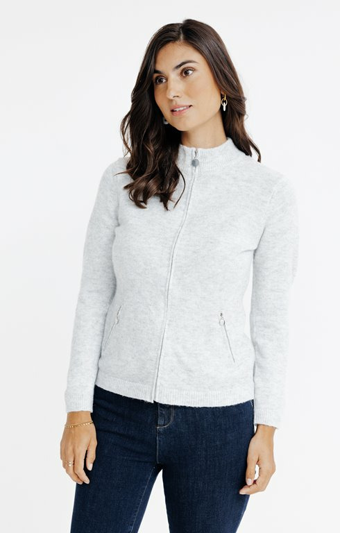 Ce cardigan vous garantit chaleur légère et praticité grâce à sa fermeture zippée, facilitant l’enfilage et le retrait. Son design polyvalent vous permet de rester élégant sans sacrifier votre confort, quelle que soit la saison.