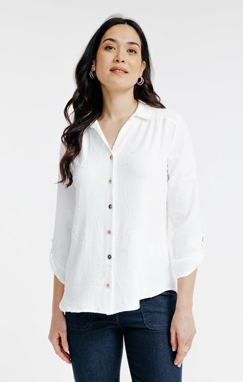 Chemise brodée avec boutons fantaisie
