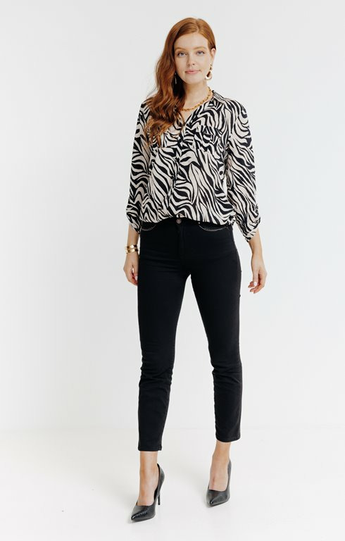 Conçue pour allier caractère et confort, cette chemise se distingue par son imprimé animalier subtil qui apporte une touche de sophistication sans excès. Sa matière légère et fluide épouse parfaitement la silhouette, offrant une aisance de mouvement idéale du matin au soir. Polyvalente, elle se porte aussi bien avec un pantalon tailleur pour un look professionnel qu’avec un jean pour une allure décontractée.