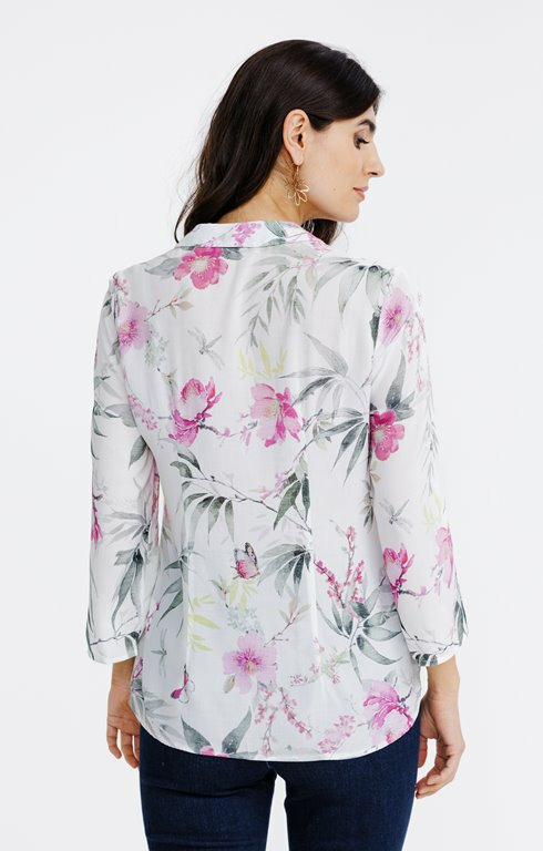 Peut-on porter ce chemisier en toutes saisons ? Sa matière légère le rend idéal pour le printemps et l’été, mais il peut aussi se porter sous une veste en automne.