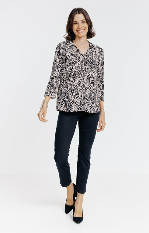 Confectionnée dans un tissu léger et fluide, cette chemise allie confort et élégance. Sa coupe ajustée valorise la silhouette tout en offrant une liberté de mouvement idéale pour la vie active. Le design imprimé moderne s’adapte aussi bien à un look professionnel qu’à une tenue décontractée.