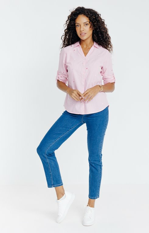 Conçu pour vous offrir une liberté de mouvement optimale, ce chemisier garantit un confort durable tout en valorisant votre style. Facile à associer, il rehausse instantanément n’importe quelle tenue, apportant une touche de sophistication discrète.
