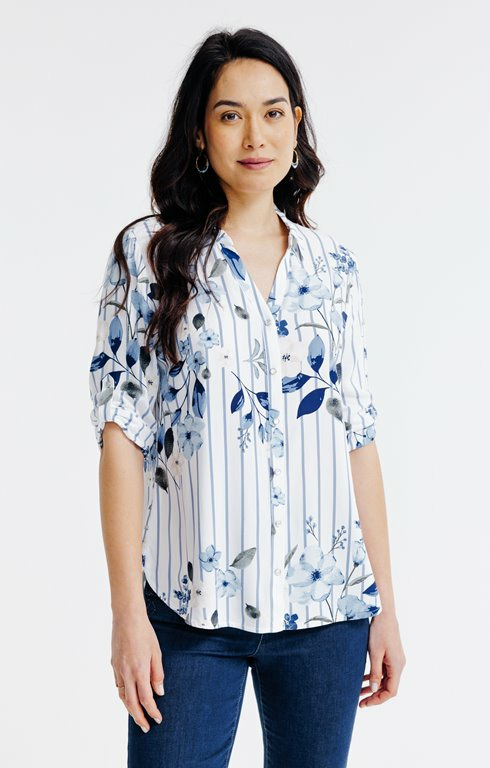 Chemise rayée imprimé fleuri