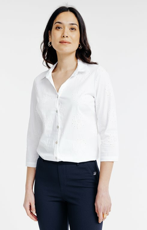 Conçu pour vous offrir une liberté de mouvement optimale, ce chemisier garantit un confort durable tout en valorisant votre style. Facile à associer, il rehausse instantanément n’importe quelle tenue, apportant une touche de sophistication discrète.