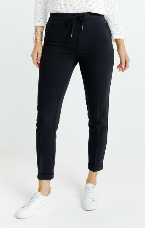 Réponse. Il s’agit d’une coupe droite avec une taille élastiquée pour un maintien confortable et un look moderne.