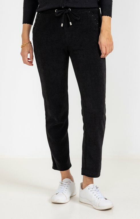 Maille velours de qualité supérieure, coupe ajustée, taille élastiquée pour un maintien parfait, détail clous sur les côtés pour une touche d’originalité discrète. Disponible en plusieurs tailles pour convenir à toutes les morphologies.