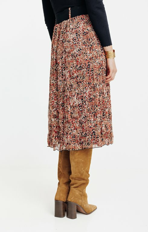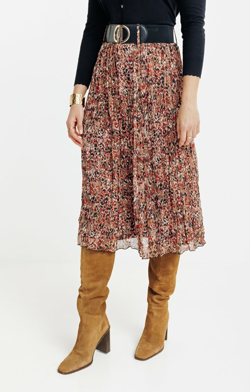 Conçue pour accompagner vos mouvements avec fluidité, cette jupe joue sur un imprimé raffiné qui capte le regard sans en faire trop. La ceinture intégrée souligne votre silhouette tout en apportant une touche structurée, idéale pour composer des looks aussi bien décontractés que soignés. Son tombé léger et sa longueur maîtrisée en font un allié parfait du printemps à l’automne.