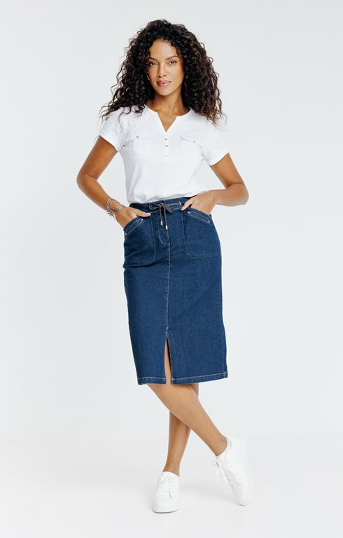 Jupe midi en denim brut