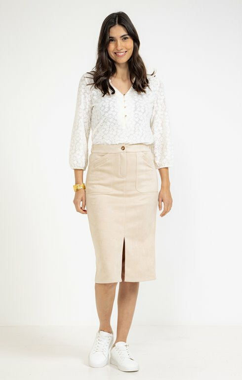 Jupe midi en scuba daim