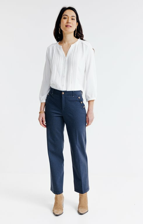 Question ? Quelle coupe propose ce pantalon ? Réponse. Il présente une coupe ajustée, moderne et confortable.