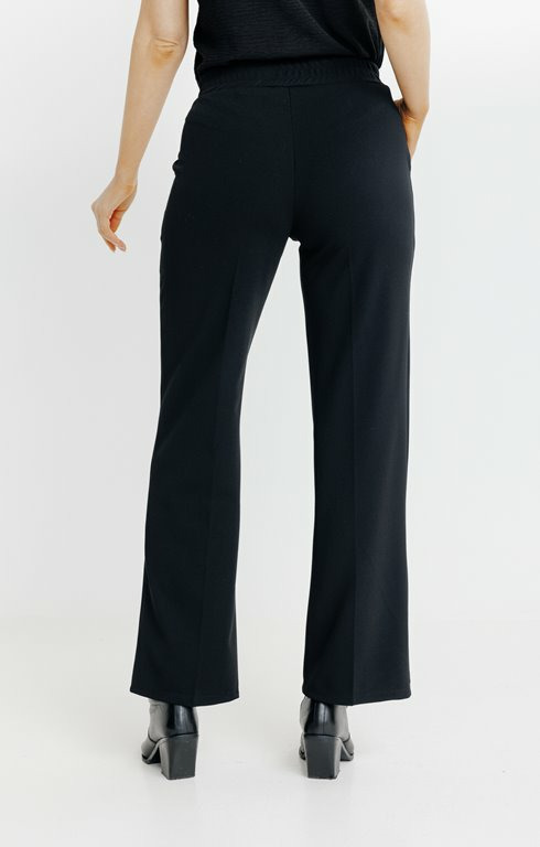 Réponse. Ce pantalon est confectionné en maille, offrant douceur et élasticité.