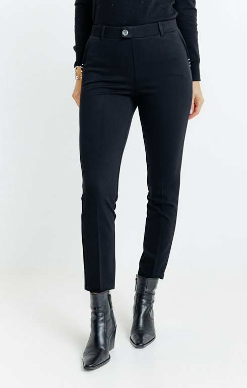 Confectionné dans une maille fine et extensible, ce pantalon épouse parfaitement la silhouette sans jamais contraindre. Sa coupe slim modernise votre allure tandis que le bouton fantaisie apporte une touche subtile d’originalité, idéale pour dynamiser vos tenues casual ou habillées. Facile à associer, il devient rapidement un incontournable de votre garde-robe.