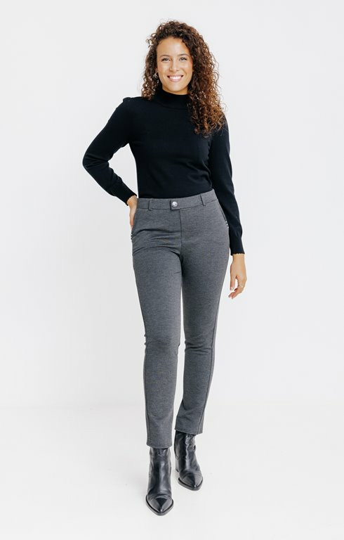 Confectionné dans une maille fine et extensible, ce pantalon épouse parfaitement la silhouette sans jamais contraindre. Sa coupe slim modernise votre allure tandis que le bouton fantaisie apporte une touche subtile d’originalité, idéale pour dynamiser vos tenues casual ou habillées. Facile à associer, il devient rapidement un incontournable de votre garde-robe.