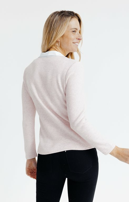 Confectionné dans un tissu de qualité, ce pull présente une structure double couche qui crée l’effet 2-en-1. Il dispose d’une coupe ajustée, de manches longues et d’un col rond classique, facile à assortir avec vos pantalons ou jeans préférés.