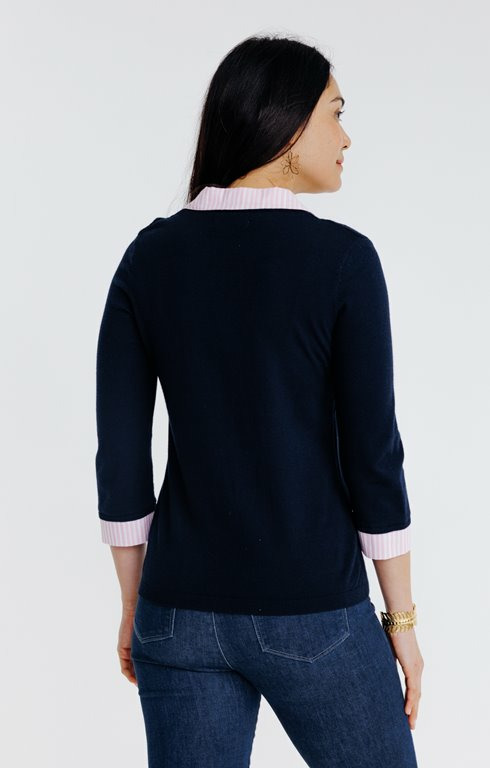 Fabriqué dans un mélange de fibres sélectionnées pour leur qualité, ce pull présente une maille fine et régulière, avec des bords-côtes aux poignets et à la base pour un maintien parfait.