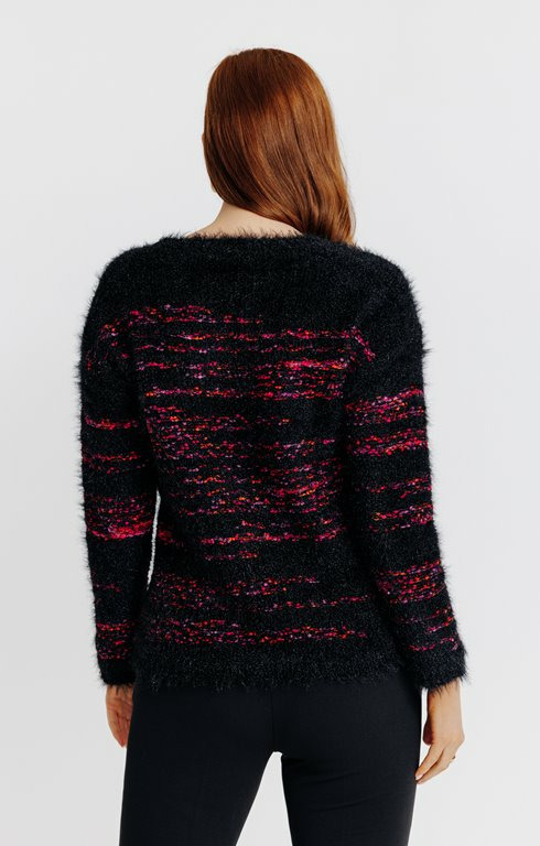 Réponse : Ce pull est confectionné en maille fine, garantissant douceur et résistance, mais la composition exacte n’est pas précisée.