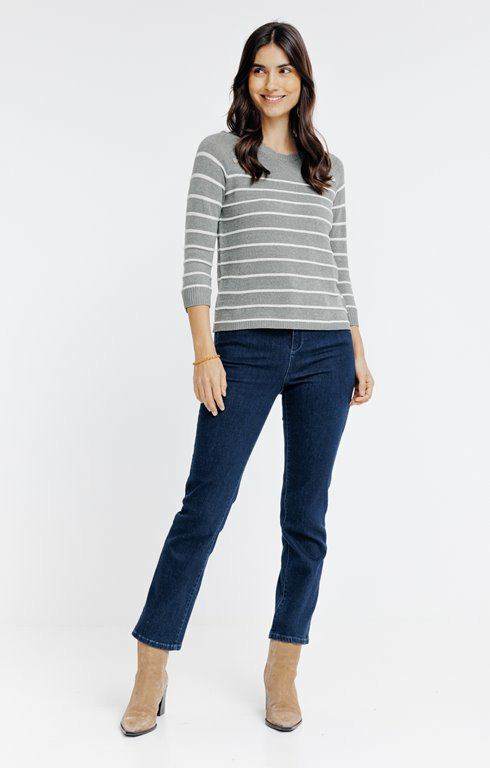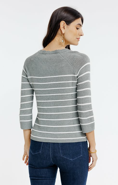 Fabriqué dans un mélange de fibres sélectionnées pour leur qualité, ce pull présente une maille fine et régulière, avec des bords-côtes aux poignets et à la base pour un maintien parfait.