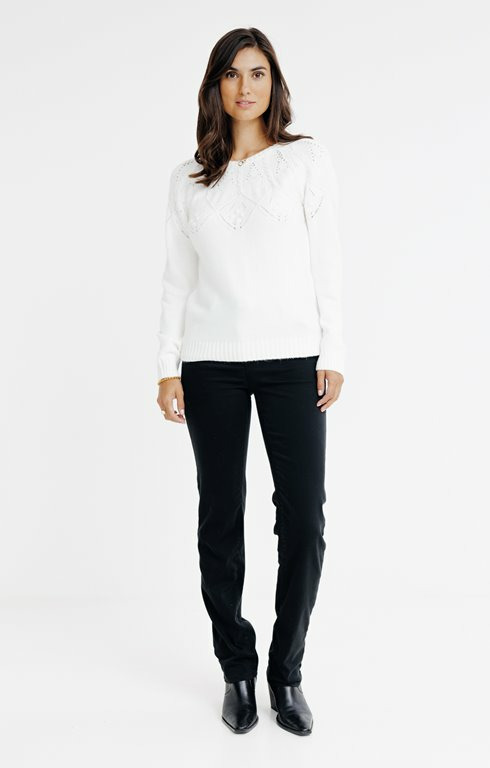 Fabriqué en maille fine, il présente un col rond classique, des manches longues et des finitions soignées aux bords-côtes. Disponible dans plusieurs coloris, il se porte aussi bien sous une veste qu’en pièce maîtresse d’un look casual chic.