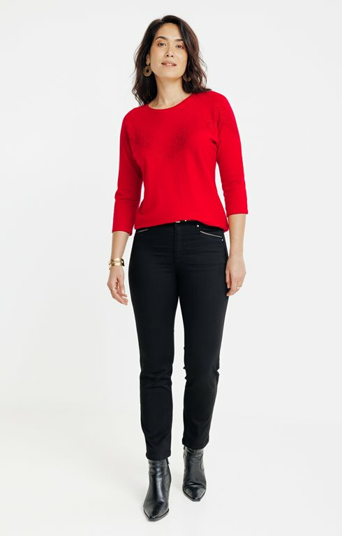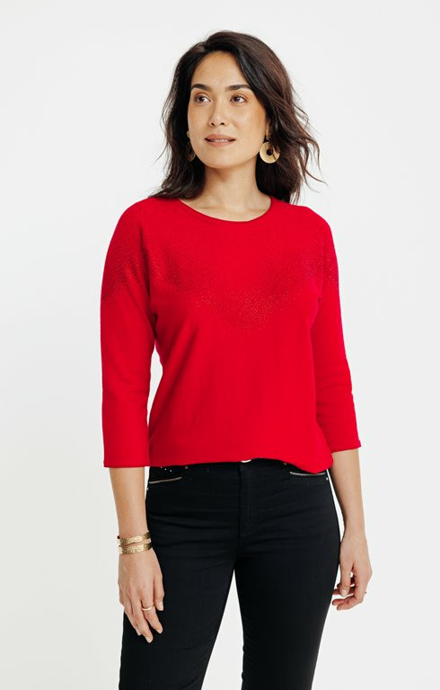 Ce pull est-il facile d’entretien ? Oui, il se lave en machine à basse température pour préserver les strass et la qualité du tissu.