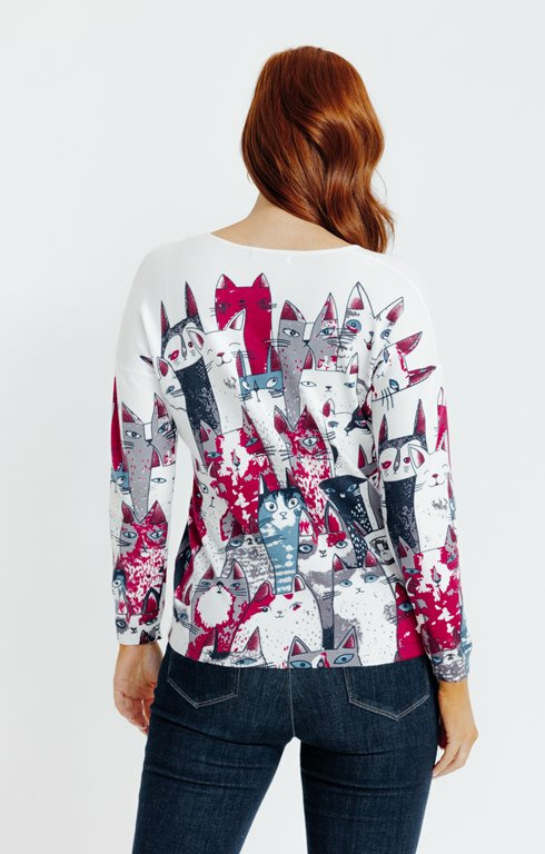 Confectionné dans une matière douce et confortable, ce pull se distingue par son imprimé chat graphique qui apporte une touche ludique et moderne à votre tenue. Sa coupe ajustée met en valeur la silhouette tout en offrant une liberté de mouvement idéale pour un usage quotidien. Portez-le seul ou sous une veste pour un look urbain et tendance.