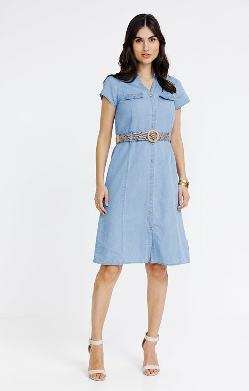 Robe chemise avec ceinture rafia