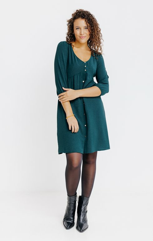 Conçue pour épouser la silhouette avec douceur, cette robe doublée offre une tenue impeccable grâce à sa matière fluide et légère. Les boutons cœur, finement travaillés, ajoutent un détail raffiné qui fait toute la différence. Polyvalente, elle se porte aussi bien en journée qu’en soirée, avec une veste ou des accessoires plus audacieux.