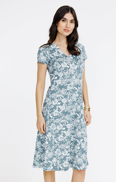 Réponse. La robe est conçue dans un tissu léger et confortable, idéal pour un port quotidien.