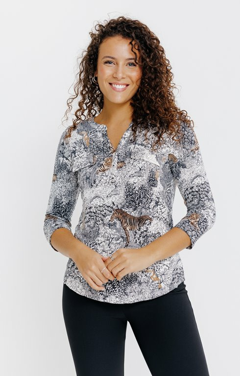 T-Shirt Col Mao Manches 3/4