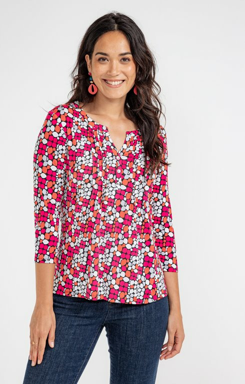 Fabriqué dans un tissu de qualité, ce tee-shirt présente un col mao avec plis soigneusement réalisés pour un rendu net et durable. La coupe est ajustée sans être contraignante, assurant confort et maintien tout au long de la journée.