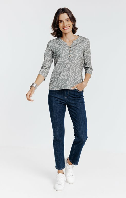 Adoptez l’élégance décontractée avec ce tee-shirt col mao imprimé signé Armand Thierry. Un essentiel moderne qui allie style affirmé et confort au quotidien.