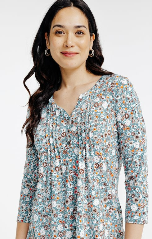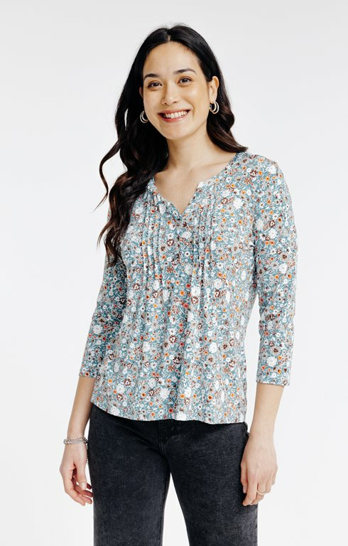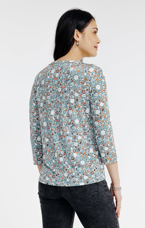 Tee-shirt col mao imprimé fleurs