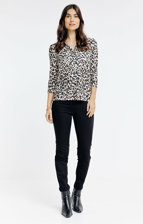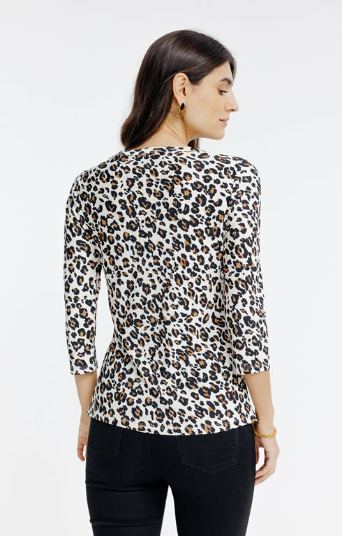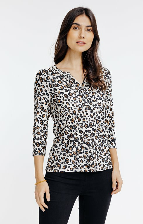 Tee-shirt col mao imprimé léopard